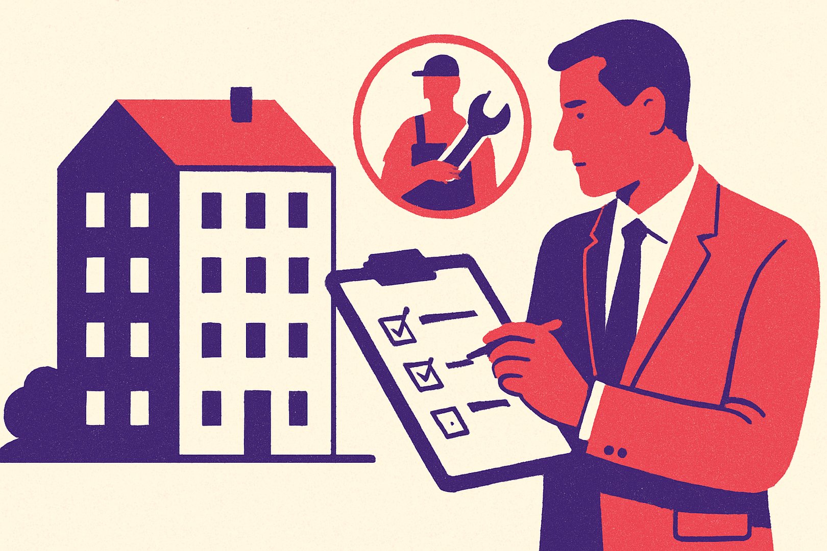 Woning- of bedrijfsgebouwbezitters kunnen zo mogelijkheden voor vastgoedservice en onderhoud bespreken.